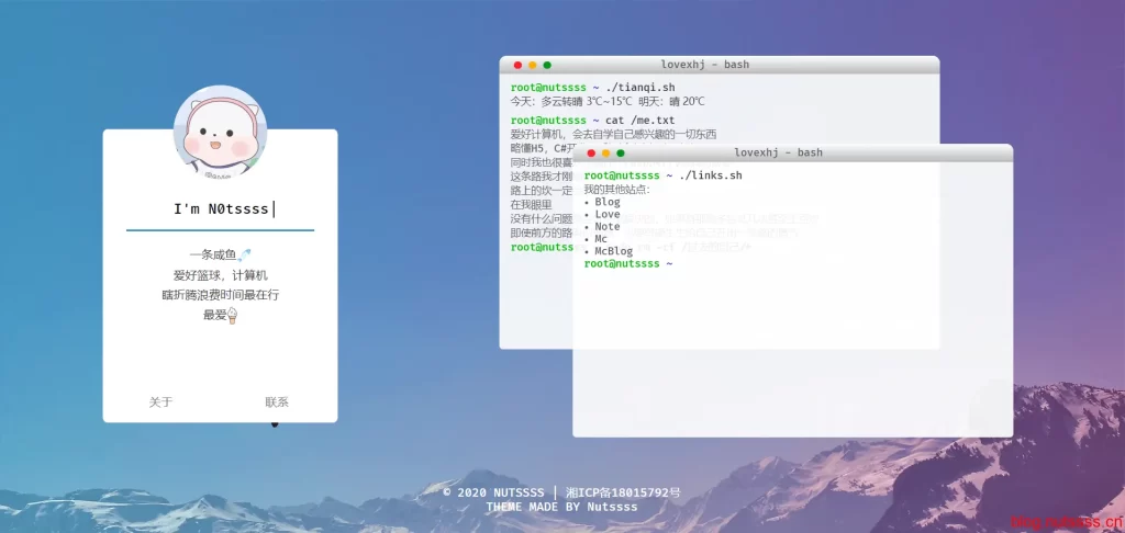 这也是我曾经用过的个人主页,那会还不知道是哪位大佬写的,当时很对我胃口,也是后来才知道作者是 N0ts,又是一份优秀的开源作品,自适应、简约、动画、无 JS,感兴趣的朋友可以自行去项目地址下载学习~